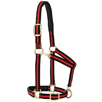 Weaver Leather Padded Breakaway Adjustable Chin and Throat Snap Halter, 1" Average Horse or Yearling Draft, Red Striped