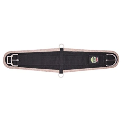 Breathable 1/2 inch wool blend natural felt bottom Black poly webbing top Patented roll snug cinch buckle for easy cinching Nylon off billet holder