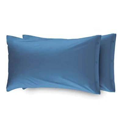 WEB LINEN Pair of Pillowcases 100% Cotton, With Side Buttons 52x82, Solid Color Avio