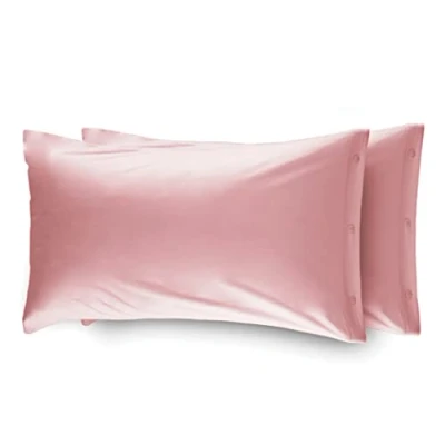 WEB LINEN Pair Of Soft Flannel Pillowcases With Side Buttons 52x82, Solid Pink