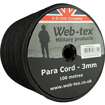Web tex Paracord Reel Roll 100m x 3mm Black