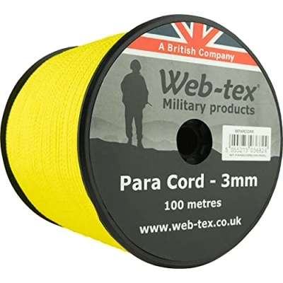 Web tex Paracord Reel Roll 100m x 3mm Yellow