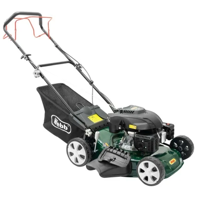This cordless Webb mower's 141 cc engine powers through overgrown gardens with ease. It's self-propelled at 3 km/h, so you'll get a helping hand as you move through the garden. Even clean-up's a doddle. There's 3 ways to dump clippings, including mulching.Good to know- From nice and neat to lovely and lush, pick from 7 cutting heights from 25-75 mm- You can tackle larger lawns with less trips to the compost heap thanks to the 55-liter bag- Its hefty 46 cm metal blade can make short work of any lawn- The handles are foldable, so you can easily store it away in your shed