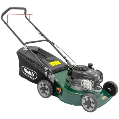Good to know- This cordless Webb Mower's 125 cc engine and 46 cm metal blade can make short work of any lawn- From nice and neat to lovely and lush, pick from 8 cutting heights from 25-80 mm- You can tackle larger lawns with less trips to the compost heap thanks to the 65-liter bag- The handles are foldable, so you can easily store it away in your shed