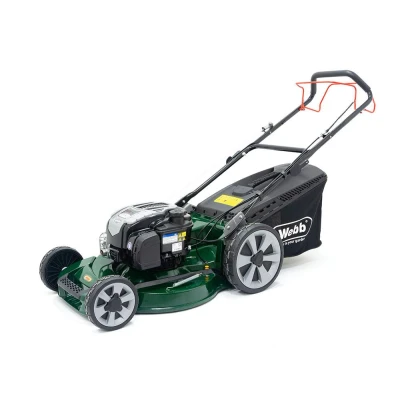 Keep your lawn in tip-top shape with this Webb's petrol-powered mower. It's self-propelled and has a 53 cm cutting width, so it's perfect for large or sloping gardens. The disc with 4 swing tip blades prevents damage if you accidentally hit an object, so there's no need to worry. And the large mesh bag fits up to 70 litres of grass. That means fewer trips to the compost heap.Good to know- The powerful Briggs & Stratton 163 cc engine lets you roam freely without getting tangled in a cable- Raise the blade from 25 to 90 mm and you can cut your grass exactly the length you want- You can also mulch or side discharge the clippings on the ground to help fertilise your lawn- It won't take up too much space - the handles are foldable, so you can easily store it in your shed