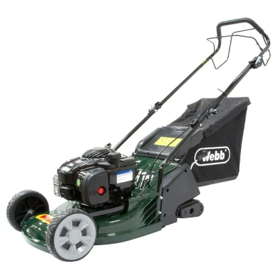 This Webb mower is petrol-powered, so you can quickly deal with any kind of lawn. It's self-propelled and has a tough 43 cm metal blade - that makes it the perfect machine for large or sloping gardens. There's a split rear roller too, which will give your lawn a nice striped finish.Good to know- The efficient 140 cc engine lets you roam freely without getting tangled in a cable- Raise the blade from 23 to 77 mm and you can cut your grass exactly the length you want- The large mesh bag fits up to 60 litres of grass - that means fewer trips to the compost heap- The mower can also mulch or scatter the clippings on the ground to help fertilise your lawn