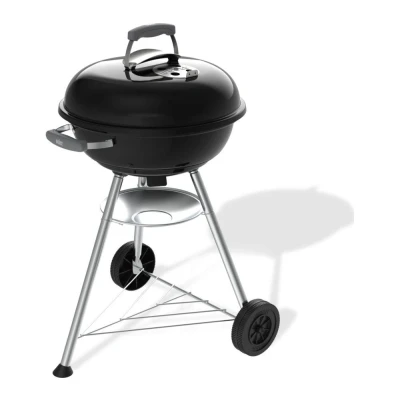 This Weber compact kettle barbeque lets you get your grill on anywhere. The porcelain-enamelled lid and bowl keep heat trapped inside so your food cooks quickly and evenly. It also prevents rust and cracking, so it'll last for years to come. The 47 cm chrome plated cooking grate gives you plenty of room for all your family favourites. Grill burgers, sausages and kebabs in one go. And the angled hook gives you a safe spot to rest the lid at the side. It makes it easier to check on your food without putting anything hot on the ground.Good to know- Adjustable air vents let you control the temperature perfectly- The removable ash tray keeps cleaning simple- All weather wheels help you move it around your space easily