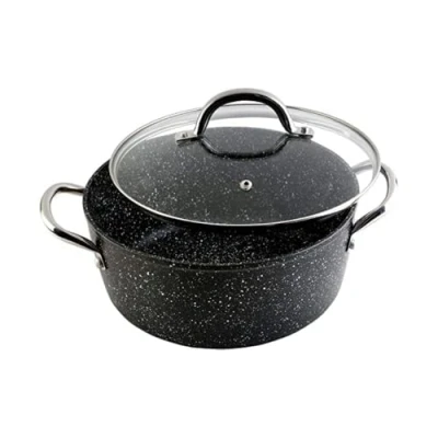 WECOOK! Granite Casserole Dish High Induction Complete 24 cm Glass Lid, Forged Aluminium 4.2 Litres, Eco Friendly Non Stick PFOA Free Stone, Steel Handles, Suitable for All Cookers, Ceramic, Gas, Oven