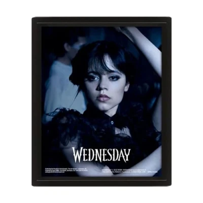 Wednesday Poster in 3D (Goo Goo Muck Design) Lenticular Wall Art and Posters Black Picture Frame 25cm x 20cm 1.5cm Official Merchandise