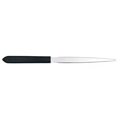Perfect desk accessory for opening envelopes and small packets Flat stainless steel blade Black plastic handle