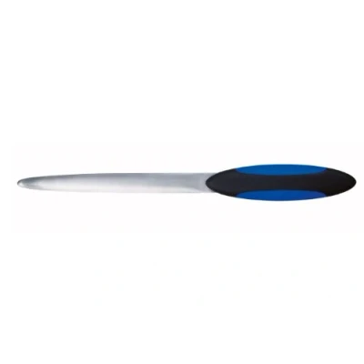 Perfect desk accessory for opening envelopes and small packets Flat stainless steel blade Soft blue/black handle