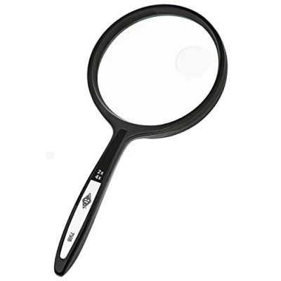 Magnifying glass with one-piece moulded frame and optical quality acrylic lens Gives 2x (4x through window) magnification Diameter: 6,3cm