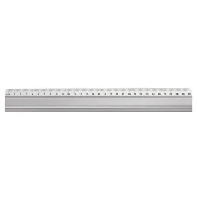 Aluminium ruler 30 cm Flat shape, back with integrated rubber lip Scale print in black Packaged in a single case