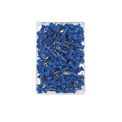 AmazonWEDO Push Pins Blue The sturdy pin board needles have a large head with recessed grip for comfortable handling The head in diabolo shape has a diameter of 9 mm, needle length 1.1 cm, total length 2.3 cm In a practical transparent box with 100 pieces