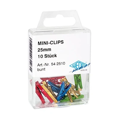 Wedo Clamp Mini Clip Plastic Pack of 10 Assorted colours In a practical transparent box Mini plastic clothes peg with steel spring for decorating and crafts