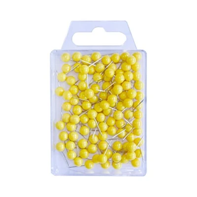 Wedo marking needle made from nickel plated flat iron wire, with Griffsicherem plastic head. Needle length: 16 mm Head Diameter: 6 mm Pack of 100 in a practical box Colour: Yellow