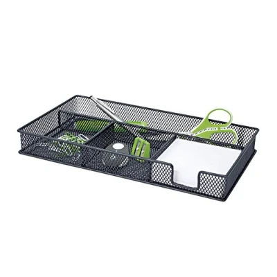 Mesh structure design made of powder-coated wire metal Lieferung in transparent box In addition to a compartment for note paper 9 x 9 cm, the pen tray offers plenty of space for pens and utensils in two further square collecting compartments and a long compartment