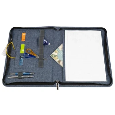 VERSATILE BLOCK INSERT - Suitable for A4 notepads with insert from all 4 sides - ideal for left-handed users. Practical compartments & holder: slip pockets and elastic loops for cards, pens and accessories. High quality material: easy care polyester with linen texture for a comfortable touch. Safe and compact: all-round zip protects the contents reliably. MODERN DESIGN: Dimensions: approx. 28.5 x 4.0 x 35.5 cm, in stylish blue melange