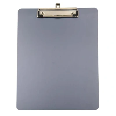 Gunmetal anodised aluminium clipboard Dimensions: 31.6 cm x 23.2 cm x 1.2 cm, plate thickness 1 mm Strong clamp with maximum clamping thickness of 8 mm Rounded corners and eyelet for hanging Durable, scratch-resistant, slightly frosted surface