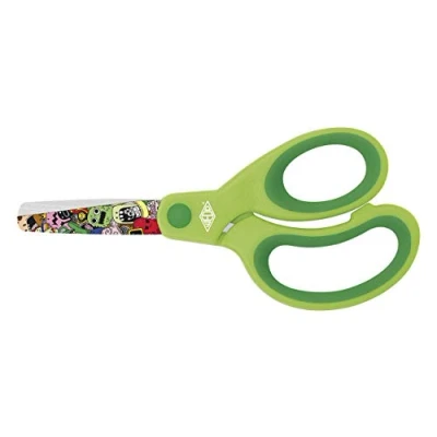 Children's scissors with Monster print Length: 13 cm. For craft projects Rounded stainless steel blades Handle colour: green.