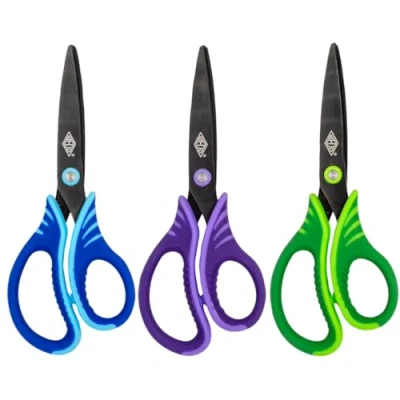 Precise craft scissors with round ground stainless steel blades and titanium gun paint Ergonomic handles with non-slip rubber profile for optimum comfort and secure grip Assorted colours in three modern colours: purple, green and blue - no colour selection possible Ideal for school, office and creative work - durable and versatile Box contents: 1 pair of scissors on a card with Euro hole hanging, dimensions: 20.5 x 7.5 x 1.4 cm – no colour selection possible