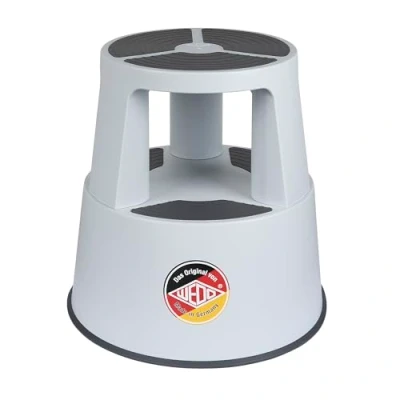 WEDO SuperStep rolling stool, made in Germany – sturdy step stool made of unbreakable polypropylene, TÜV & GS tested according to EN 14183-F Non-slip steps made of TPE - thanks to innovative 2-component processing for maximum safety Practical roller stool with sliding castors - three castors mounted on steel springs that automatically fix themselves under load Sustainable & Durable - 100% recyclable material, non-fading & robust, 10 year warranty on the plastic body High load capacity - up to 150 kg load capacity, dimensions: height 42.8 cm (unloaded), top diameter 29.2 cm, diameter at bottom 42.4 cm