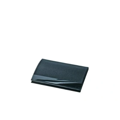 Shadow leather look case for business cards Capacity: 90 x 57 mm Maximum cards Material: leatherette and stainless steel Dimensions: 9.6 x 6.5 x 1.3 cm Supplied in black gift box