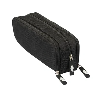 TRIPLE ORGANIZATION Practical pencil case with three separate zipper compartments, ideal for school, college or office. LARGE STORAGE SPACE: Spacious interior compartment can hold important pens and a standard geo triangle; Includes 7 pen loops, 2 card slots and 2 mesh pockets. PREMIUM MATERIALS - Easy care black polyester exterior lined with wipe clean grey polyester lining. Robust workmanship: sturdy zip and zip, matching the colour of the pencil case. Can be combined with the writing case, college folder and notebook backpack of the same series.