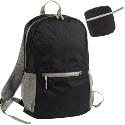 Ultra lightweight foldable backpack made of water resistant nylon, ideal for travel Padded, adjustable carrying straps for high wearing comfort Compact pack size: 20 x 20 x 3 cm, unfolded: 36 x 20 x 44 cm Separate front compartment with zip and mesh pockets for bottles Practical luggage strap for easy attachment to a trolley