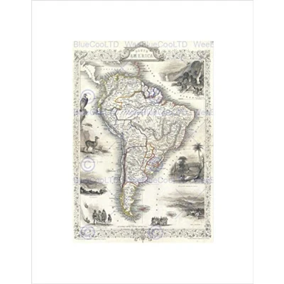 Wee Blue Coo 1850 Tallis Map South America Wall Art Print