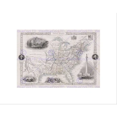 Wee Blue Coo 1850 Tallis Map The United States Wall Art Print