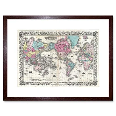 Wee Blue Coo 1852 Colton Map The World On Mercator's Projection Vintage Art Framed Wall Print
