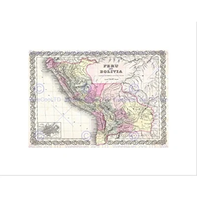 Wee Blue Coo 1855 Colton Map Peru And Bolivia Vintage Picture Wall Art Print