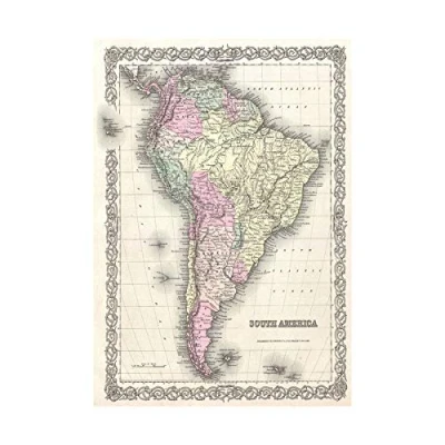 Wee Blue Coo 1855 Colton Map South America Wall Art Print