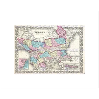 Wee Blue Coo 1855 Colton Map Turkey Europe Macedonia And The Balkans Wall Art Print