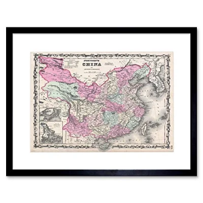 Wee Blue Coo 1861 Johnson Map China Vintage Art Picture Framed Wall Print