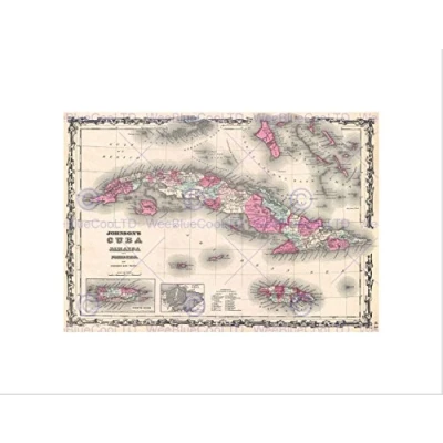 Wee Blue Coo 1862 Johnson Map Cuba And Porto Rico Vintage Wall Art Print
