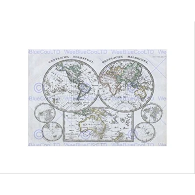 Wee Blue Coo 1862 Stieler Hemisphere Map The World Vintage Wall Art Print