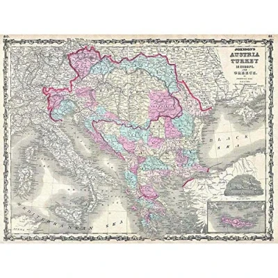 Wee Blue Coo 1863 Johnson Map Austria Hungary Turkey Italy And Greece Art Print Poster Wall Decor 12X16 Inch