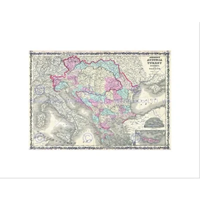 Wee Blue Coo 1863 Johnson Map Austria Hungary Turkey Italy And Greece Art Wall Print