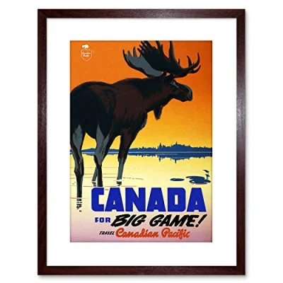 Wee Blue Coo 9x7 '' CANADIAN PACIFIC RAILWAY MOOSE CANADA BIG GAME FRAMED ART PRINT F97X1214