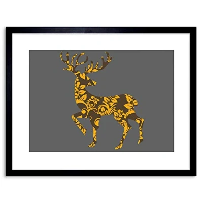 Wee Blue Coo 9x7 '' DECORATIVE STAG ANTLERS FLORAL DESIGN FRAMED ART PRINT F97X427