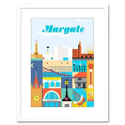 Wee Blue Coo 9x7 '' MARGATE SEASIDE TOWN KENT SUN BEACH LIGHTHOUSE FRAMED ART PRINT F97X1267