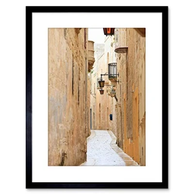 Wee Blue Coo 9x7 '' MDINA MALTA HISTORIC NARROW BACK STREET PHOTO FRAMED ART PRINT F97X522