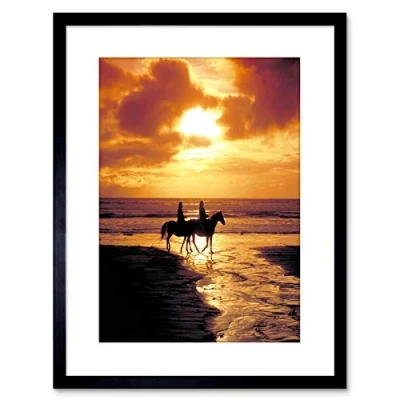 Wee Blue Coo 9x7 '' MP PHOTO SEASCAPE BEACH HORSES SUNSET OCEAN SAND FRAMED ART PRINT F97X567