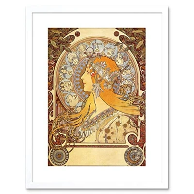 Wee Blue Coo 9x7 '' MUCHA ZODIAC 1896 OLD MASTER PAINTING REPRO FRAMED ART PRINT F97X182