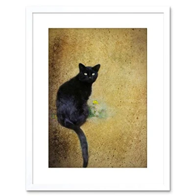 Wee Blue Coo 9x7 '' PHOTO CAT BLACK FLOWER YELLOW COOL FRAMED ART PRINT F97X841