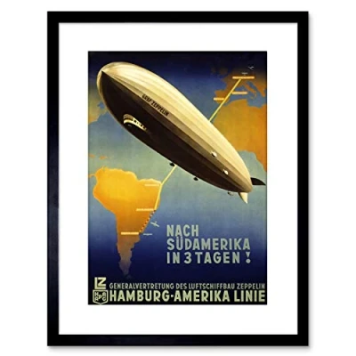 Wee Blue Coo 9x7 '' TRAVEL AIRSHIP ZEPPELIN GERMANY SOUTH AMERICA FRAMED ART PRINT F97X1336