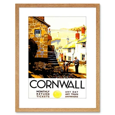 Wee Blue Coo 9x7 '' TRAVEL CORNWALL VILLAGE HARBOUR LIGHTHOUSE FRAMED ART PRINT F97X1368
