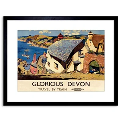 Wee Blue Coo 9x7 '' TRAVEL RAILWAY GLORIOUS DEVON VILLAGE FRAMED ART PRINT F97X1457
